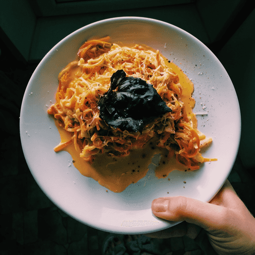 Паста а ля карбонара из цукини и моркови — это изысканная вариация классического итальянского блюда, адаптированная для любителей легкой и здоровой кухни. Вместо традиционных спагетти используются нежные овощные полоски цукини и моркови, которые в сочетании с сливочным соусом и хрустящим беконом создают необыкновенно гармоничный вкус. Блюдо имеет насыщенный сливочно-сырный аромат с легкой пряностью чеснока и черного перца, а свежий базилик придает ему тонкую нотку средиземноморской свежести. Эта паста идеально подходит для легкого ужина или изысканного обеда, сохраняя итальянские традиции, но с акцентом на полезные ингредиенты. Подается горячей, с дополнительной порцией тертого пармезана, чтобы подчеркнуть её нежность и насыщенность вкуса.