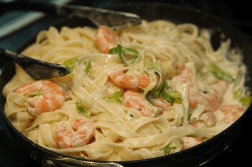 Паста с креветками и сыром