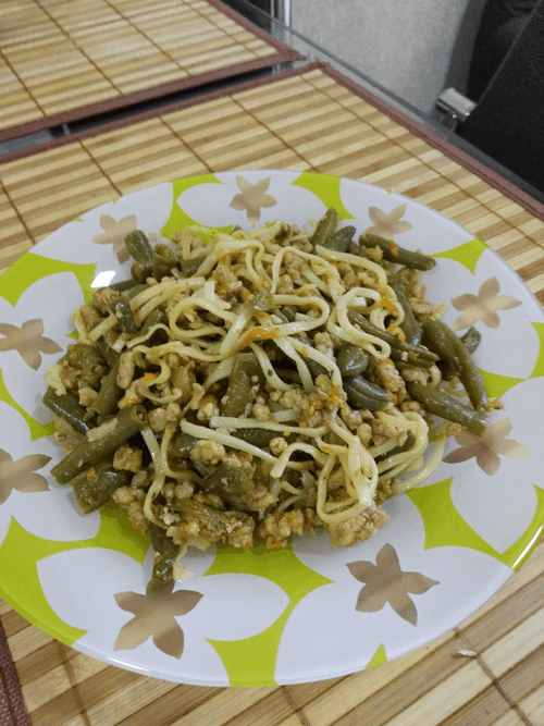 Лапша со спаржевой фасолью — это блюдо, в котором сочетаются традиции итальянской кухни с нотками свежести и насыщенного вкуса. Исторически итальянцы ценили пасту за ее универсальность, а добавление спаржевой фасоли придает блюду легкость и хрусткость. Обжаренный свиной фарш, лук и чеснок создают насыщенный аромат, а белое вино придаёт соусу изысканную глубину. Яичная лапша пропитывается этим богатым букетом, а свежий базилик завершает композицию ярким акцентом. Блюдо идеально подходит как для уютного ужина, так и для торжественного обеда. Гармония текстур и ароматов делает его незабываемым.