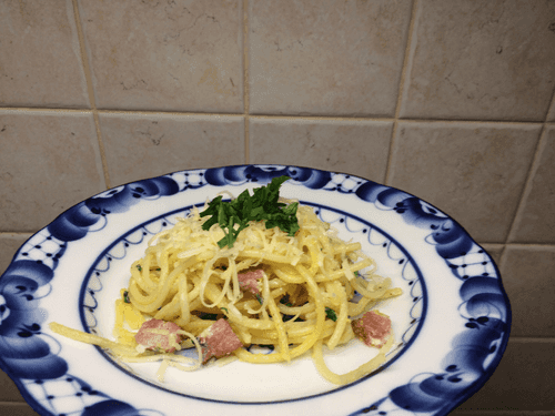 Спагетти с карбонатом — это восхитительное блюдо итальянской кухни, вобравшее в себя насыщенность сливок, аромат хрустящего бекона и нежную текстуру пасты. Его корни уходят в традиционные рецепты пасты, где соединение простых ингредиентов создает богатый и многогранный вкус. Кремовая консистенция соуса, дополненная легкой чесночной ноткой и свежестью петрушки, делает его идеальным вариантом для уютного ужина. Желток, добавленный в конце, придает блюду бархатистость и насыщенность, а тертый сыр завершает композицию, добавляя тонкие пикантные акценты. Это блюдо можно подавать как самостоятельное угощение или как часть полноценного итальянского застолья. Оно прекрасно сочетается с белыми сухими винами и свежими овощными салатами, создавая гармоничный и незабываемый гастрономический опыт.