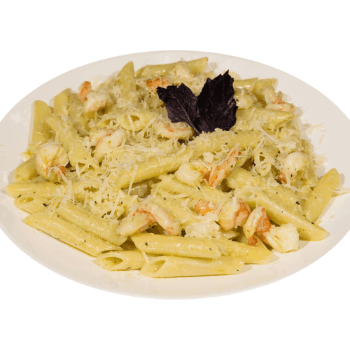 Пенони с креветками и песто