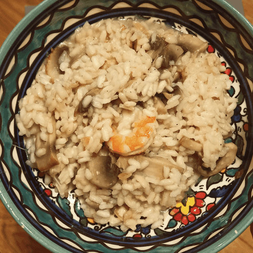 Ризотто с грибами, креветками и шпинатом