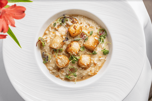 Ризотто с лисичками и гребешками — это изысканное блюдо, которое сочетает в себе насыщенные ароматы лесных грибов и нежный вкус морепродуктов. Подаваемое в ресторане «Магадан», данное ризотто переносит вас в мир гастрономического удовольствия, где каждая ложка наполняет сердце теплом и уютом. Лисички, с их характерной сладковатой ноткой, прекрасно дополняют сочные гребешки, создавая гармонию текстур и вкусов, которая порадует даже самых взыскательных гурманов. Это блюдо идеально подходит для особых случаев или романтического ужина, когда хочется насладиться чем-то поистине уникальным и непревзойденным.