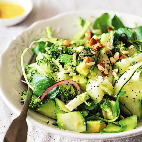 Очищающий салат – это гармоничное сочетание свежих овощей, ароматных специй и питательных ингредиентов, которое пришло в русскую кухню как часть тренда на здоровое питание. Легкий, но сытный, он дарит организму силу и свежесть благодаря брокколи, цукини и авокадо. Заправка из лимонного сока, оливкового масла и дижонской горчицы придает пикантную нотку и подчеркивает природный вкус ингредиентов. Миндаль и кунжут добавляют хрустящую текстуру и делают блюдо более насыщенным. Этот салат идеально подходит для легкого ужина или как освежающий перекус, который очищает организм и заряжает энергией. Его можно подавать как самостоятельное блюдо или как часть полноценного обеда. Ароматная заправка, нежные овощи и ореховая хрусткость – прекрасное сочетание для тех, кто заботится о своем здоровье и ищет новые гастрономические впечатления.