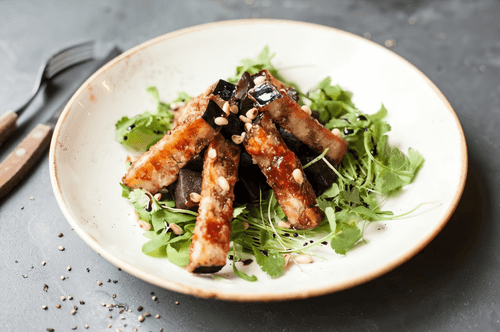 Салат со свеклой, баклажаном по-азиатски и рукколой