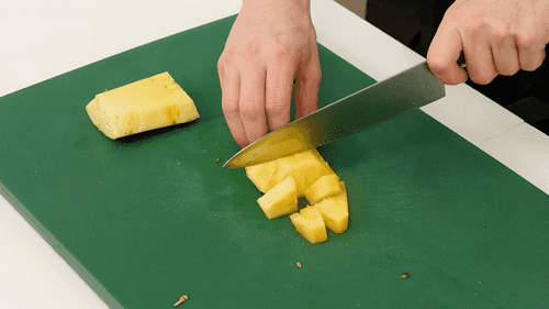 Свежий ананас нарезать дольками, обжарить кунжут на сухой сковороде до золотистого цвета.