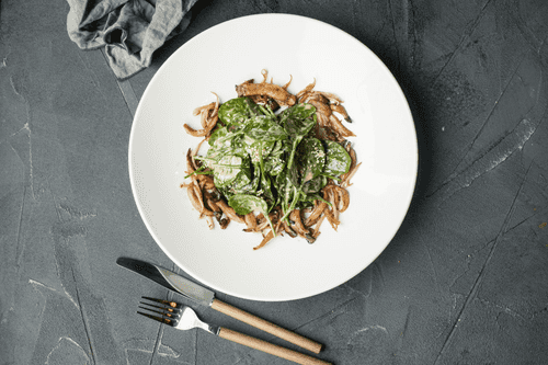 Теплый салат со шпинатом и вешенками — это гастрономическое произведение, вдохновленное итальянской кухней, где свежесть встречается с насыщенными умами-нотами. Вешенки, обжаренные с чесноком и соевым соусом, приобретают нежную текстуру и глубокий вкус, дополненный хрустящими ростками сои. Мини-шпинат добавляет легкость и свежесть, а ореховый соус придает салату изысканный кремовый оттенок. Завершающим аккордом становятся кунжутные семечки, добавляющие тонкую ореховую хрусткость. Этот салат идеален для тех, кто ценит теплые закуски и гармоничное сочетание полезных ингредиентов. Его можно подать как самостоятельное блюдо или как изысканный гарнир к рыбе или курице.