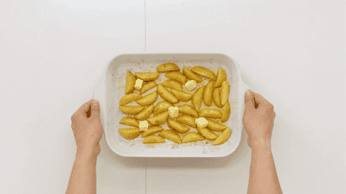 Молодой картофель нарезать на дольки или половинки в зависимости от размера. Положить в форму для запекания, посыпать паприкой, солью и перцем по вкусу, полить оливковым маслом и перемешать, затем добавить небольшие кусочки сливочного масла и отправить в духовку, разогретую до 180 градусов, на 30 минут.