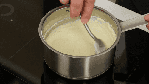 В небольшом сотейнике прогреть плавленый сыр вместе с соком одного лимона, солью и перцем. Перемешать ложкой до однородной массы.