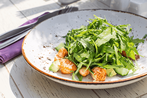 Салат с креветками, руколой и авокадо