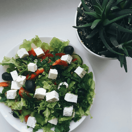 Салат из свежих овощей с фетой – это классическое блюдо греческой кухни, которое объединяет свежие, хрустящие ингредиенты с нежной кремовой текстурой сыра фета. Этот салат берет свое начало в солнечной Греции, где простота и натуральность продуктов ценятся превыше всего. Огурцы, томаты черри, латук и ароматная зелень создают восхитительную комбинацию свежести и легкости, а маслины добавляют характерный солоноватый оттенок. Фета, пропитанная оливковым маслом, придает сливочный вкус, который прекрасно сочетается со специями, солью и перцем. Идеально подходит как самостоятельное блюдо или как гарнир к мясу и рыбе. Этот салат не только радует вкус, но и дарит ощущение средиземноморской гармонии в каждом кусочке.