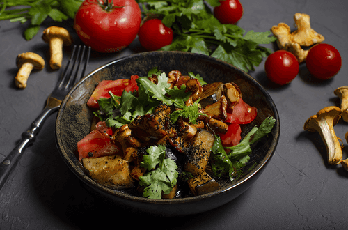 Салат с лисичками, баклажанами и кинзой
