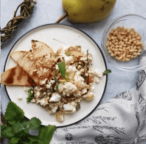 Салат с кускусом, грушами, виноградом, мятой и кедровыми орехами