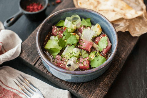 Салат с филе тунца и огурцами в азиатской заправке