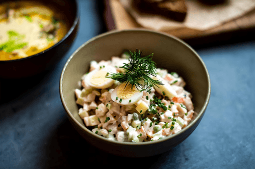 Оливье с лососем и сливками
