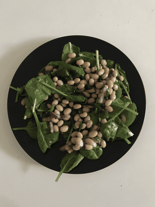Салат с фасолью и шпинатом