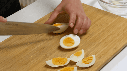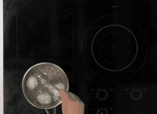 В сотейнике вскипятить воду, положить в нее яйца и варить 11 минут.