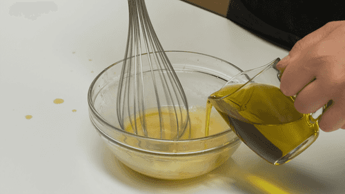 В большой миске смешать венчиком горчицу, мед и уксус. Затем, продолжая взбивать, влить оливковое масло тонкой струйкой. Посолить и поперчить по вкусу.