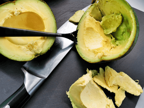 Достать авокадо из шкурки (удобнее использовать столовую ложку).