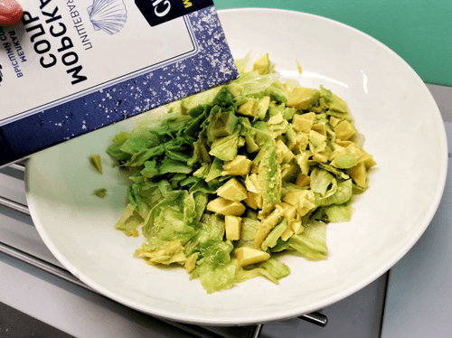 Добавить авокадо к салату и посолить.