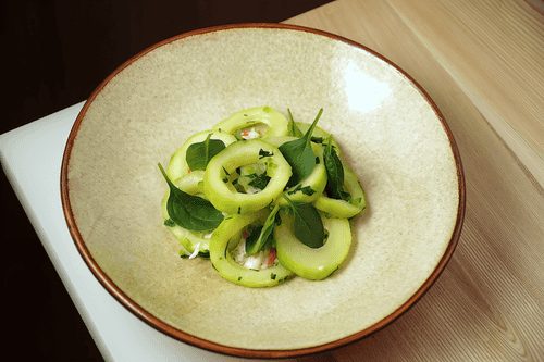 Салат из кабачка с камчатским крабом и трюфельным айоли