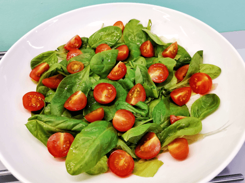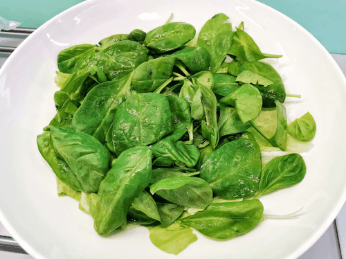 Сверху выложить листья шпината.