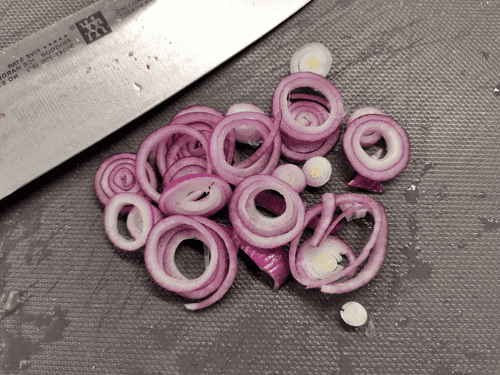 Лук нарезать кольцами.