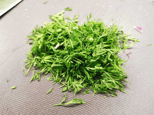 Укроп отделить от стеблей и нарезать.