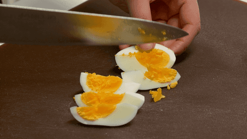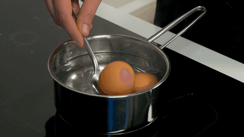 Яйца положить в кастрюлю с кипящей водой и варить 10 минут. Затем залить их холодной водой, чтобы охладить.