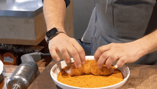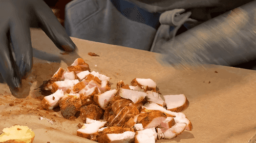 Обвалять грудку в смеси специй так, чтобы не осталось проплешин. Можно использовать любую готовую смесь для птицы, но лучше составить ее самим. В Smoke BBQ смесь специй включает следующие ингредиенты: сухой лук, сухой чеснок, обычная паприка, копченая паприка, горчичный порошок.