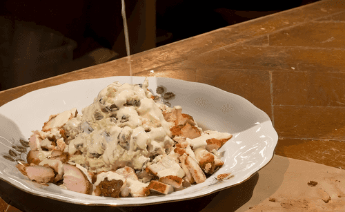 Приготовить сливочный соус. На 200 мл сливок взять 1 чайную ложку вустерширского соуса, 1 чайную ложку горчицы, посолить, поперчить и выпаривать все вместе на сильном огне 15–20 секунд, до консистенции питьевого йогурта или нежирной сметаны.