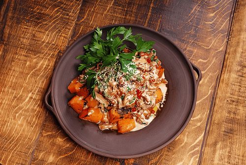 Салат мясной с тыквой и гранатом