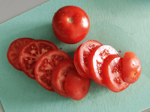 Помидор нарезать кружочками толщиной около 8 мм.