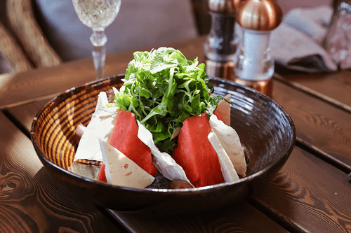 Салат, в котором арбуз гармонирует с брынзой и соусом песто, является исключительным творением шеф-повара Талеха Гамидова из ресторана Zafferano City. Это блюдо удивляет своей необычной композицией: сладость арбуза идеально контрастирует с пикантностью соленой брынзы, создавая уникальное вкусовое ощущение. Хотя такое сочетание может показаться непривычным, на самом деле оно раскрывает арбуз в совершенно новом свете, позволяя вам заново открыть его свежесть и текстуру. Этот салат прекрасно подходит как для летних пикников, так и для изысканных ужинов, внося в меню нотки оригинальности и яркости.