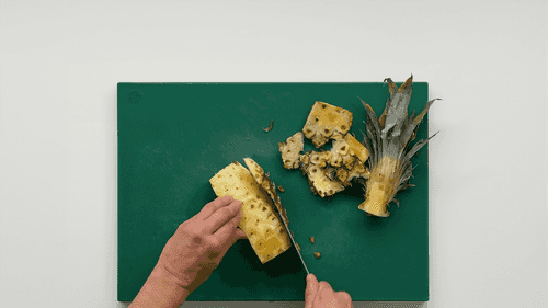 Ананас очистить, вырезать жесткую сердцевину и нарезать небольшими дольками.