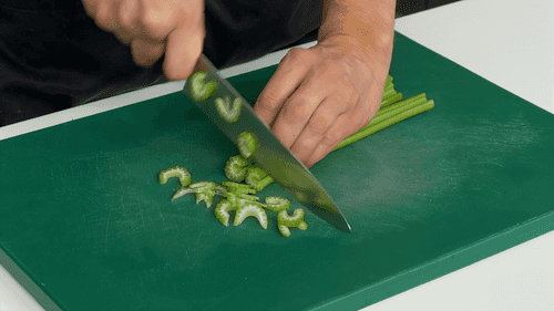 Сельдерей нарезать тонкими ломтиками.