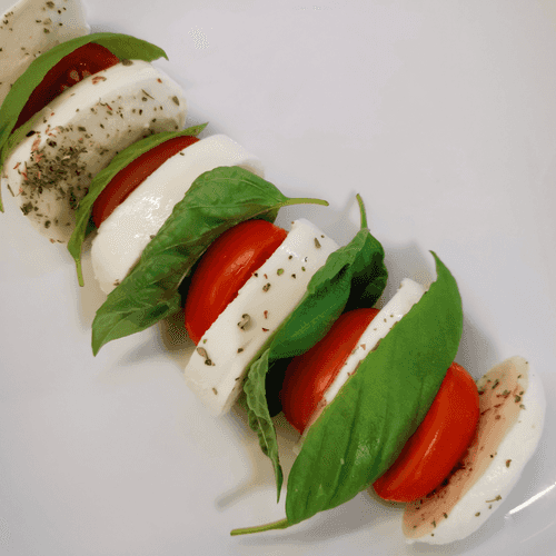 Классический салат капрезе – воплощение простоты и элегантности итальянской кухни. Его корни уходят в солнечную Италию, где свежие помидоры, нежная моцарелла и ароматный базилик символизируют цвета национального флага. Майоран добавляет тонкую пряную ноту, подчёркивая сливочность сыра. Сочетание свежести томатов и насыщенности моцареллы делает капрезе идеальным легким блюдом, будь то закуска или сопровождение к основному блюду. Завершает композицию бальзамический соус, придающий изысканную сладковато-кислую глубину вкуса. Это не просто салат – это традиция, любовь к качественным ингредиентам и искусство наслаждения едой.