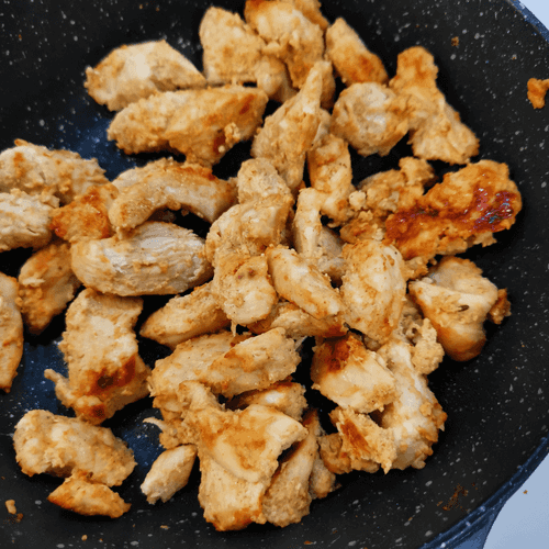 Выложить курицу в салат.