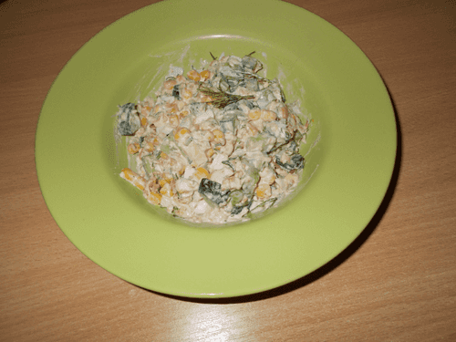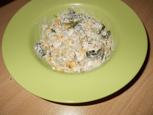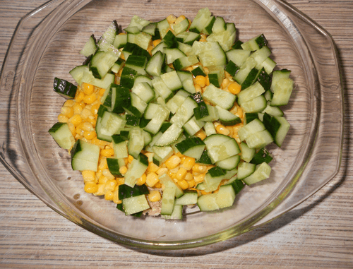 Салат с тунцом, кукурузой и огурцом