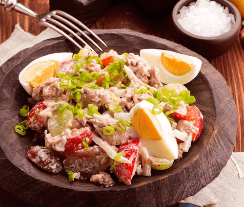 Салат из печени трески с маринадами – изысканное блюдо русской кухни, в котором удачно сочетаются нежность морепродукта и пикантность маринованных овощей и фруктов. Легкость печеночного вкуса гармонично дополняется кисло-сладкими нотками, создавая необычный гастрономический ансамбль. Традиционно тресковая печень ценится за свою мягкость и насыщенный вкус, а в этом рецепте она получает свежий оттенок благодаря маринадам – яблокам, сладкому перцу, винограду и другим ингредиентам. Легкая кислинка лука, пропитанного уксусом, добавляет остроты, а майонез придает салату сливочную текстуру. Завершает композицию украшение из вареного яйца, подчеркивая эстетичность блюда. Этот салат идеально подходит для праздничного стола, удивляя гостей своим богатым вкусом и оригинальной подачей.