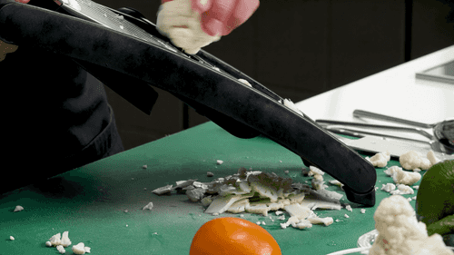 Цветную капусту тонко нашинковать с помощью мандолины.