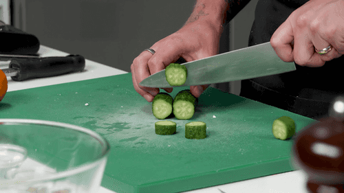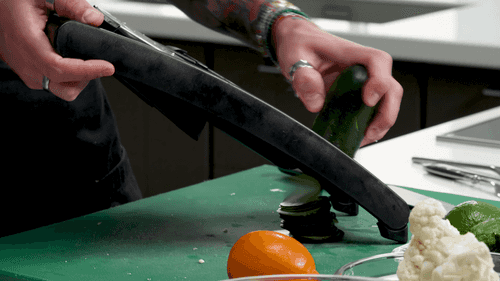 Цукини нарезать тонкими колечками, также с помощью мандолины.