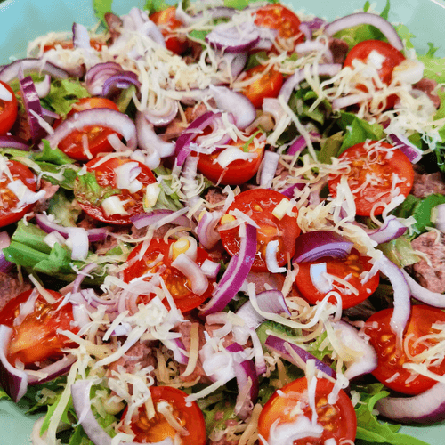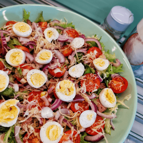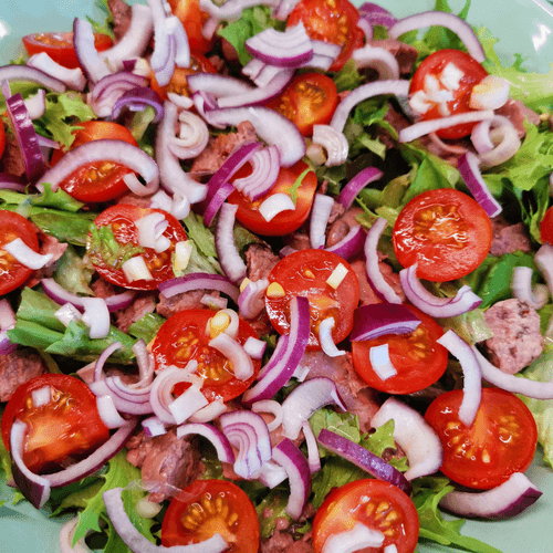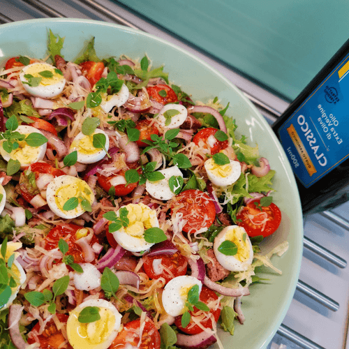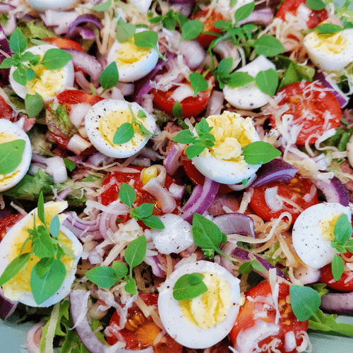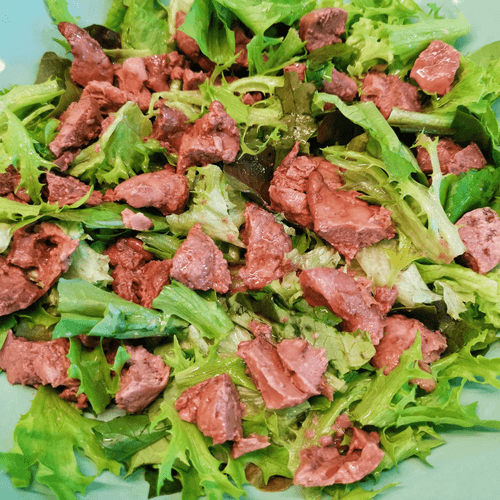 Этот салат с печенью трески и перепелиными яйцами — изысканное блюдо, вдохновлённое итальянскими традициями. Печень трески, богатая нежной текстурой и тонким морским вкусом, гармонично сочетается со свежестью кудрявого салата и сладостью помидоров черри. Перепелиные яйца придают салату мягкость, а тертый пармезан — пикантную глубину вкуса. Легкие нотки базилика и оливкового масла подчёркивают средиземноморское происхождение блюда. Этот салат идеален как лёгкая закуска или сопровождение к бокалу белого вина. Его свежий и насыщенный вкус наполняет трапезу атмосферой солнечной Италии.