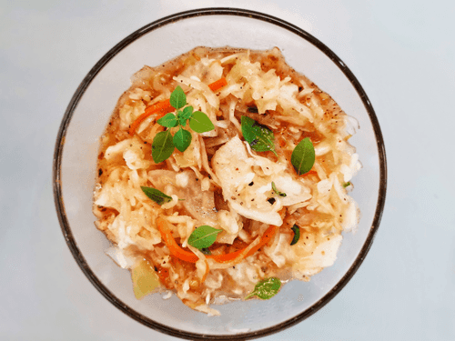 Салат из квашеной капусты с пряными специями и базиликом
