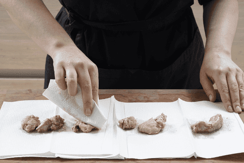 С печени трески тщательно слить масло (а лучше обсушить ее на бумажном полотенце).