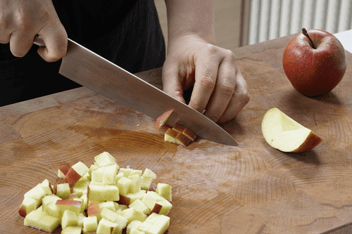 Яблоки очистить от сердцевинки и нарезать кубиками.