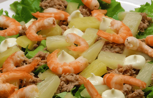 Салат из тунца с ананасами и креветками – это изысканное сочетание морских и фруктовых нот, создающее гармонию вкусов. Европейская кухня славится экспериментами, и этот салат – яркий пример удачного кулинарного союза. Нежный тунец, сочные ананасы и деликатные креветки создают уникальный вкусовой баланс: сладость ананаса подчеркивает солоноватость тунца, а креветки добавляют утонченную текстуру. Маслины вносят легкую пикантность, а майонез связывает ингредиенты в единое целое. Подается на свежих листьях салата, что делает блюдо не только аппетитным, но и красивым. Этот салат идеально подходит для легкого ужина или праздничного застолья, оставляя после себя нежное послевкусие морского бриза и тропической свежести.