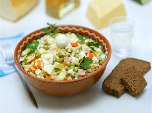 Салат мясной — это сытное и насыщенное блюдо, которое сочетает в себе нежность отварного мяса, мягкость картофеля и пикантность солёных огурцов. Его корни уходят в традиции домашней кухни, где ценится простота приготовления и гармония вкусов. Яйца добавляют сливочную текстуру, а зелёный горошек и репчатый лук вносят свежие нотки. Заправленный майонезом, этот салат становится идеальным дополнением к семейному застолью или праздничному ужину. Идеален как самостоятельное блюдо или гарнир к горячему. Каждый ингредиент играет свою роль, создавая сбалансированное сочетание солёного, нежного и слегка хрустящего. Этот салат — образец уютной домашней кухни, который вызывает тёплые воспоминания и дарит гастрономическое удовольствие.
