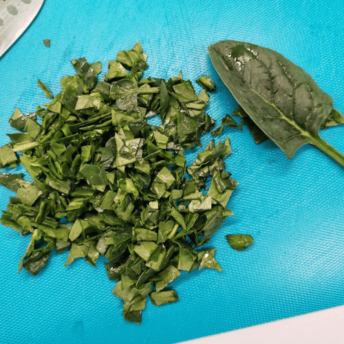 Шпинат мелко нарезать.