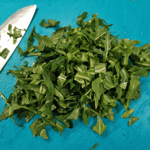 Затем мелко нарезать руколу.